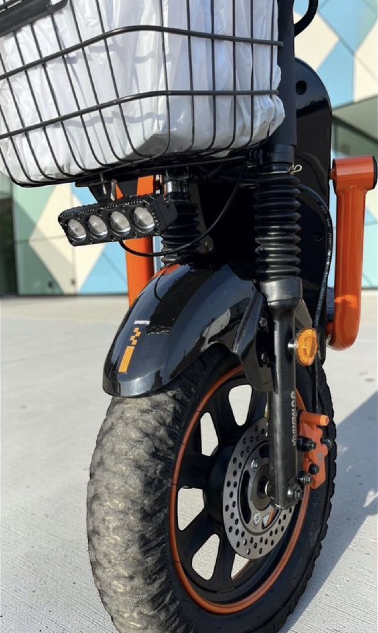 Подсветка: яркий диодный прожектор с мощной линзой и ходовыми огнем, задний габарит, поворотники, стоп сигналы